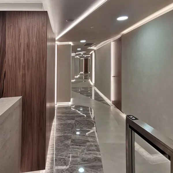 Освещение AKKO мягкое и рассеянное. Блескость поверхности светильника снижена по сравнению со светильниками без опалового рассеивателя.