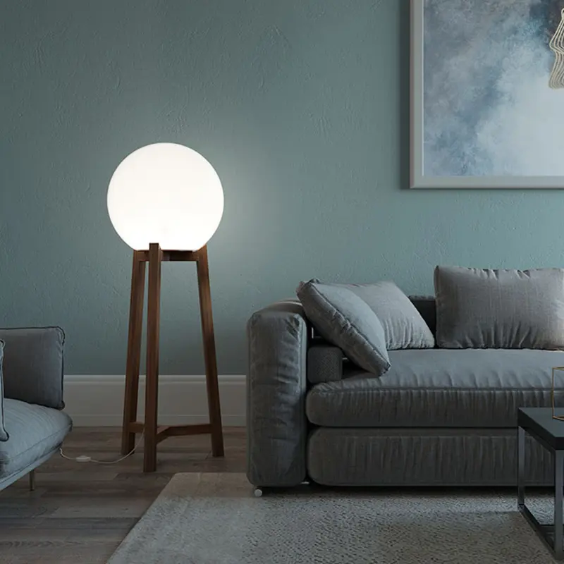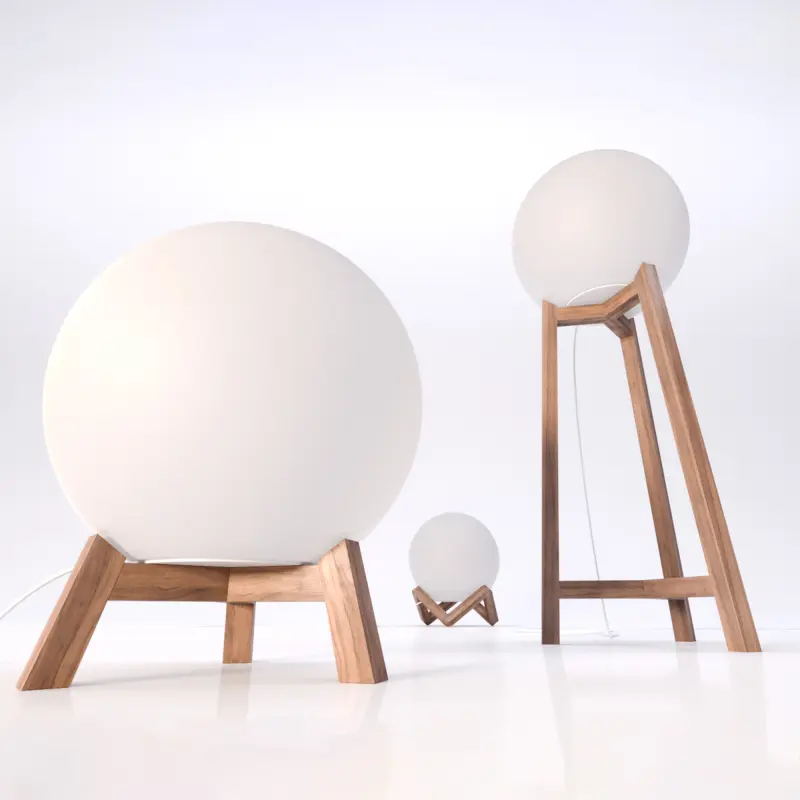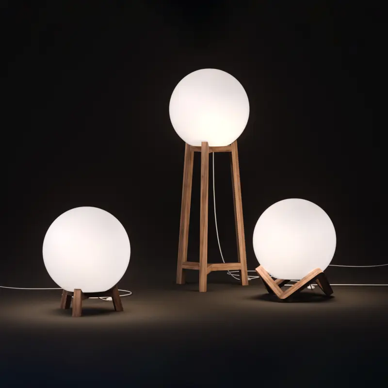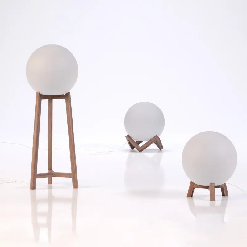 Напольные светильники-шары BOLA SOPO на деревянных подставках. Светильник выполнен в форме шаров и поставляется с одним из типов опор: