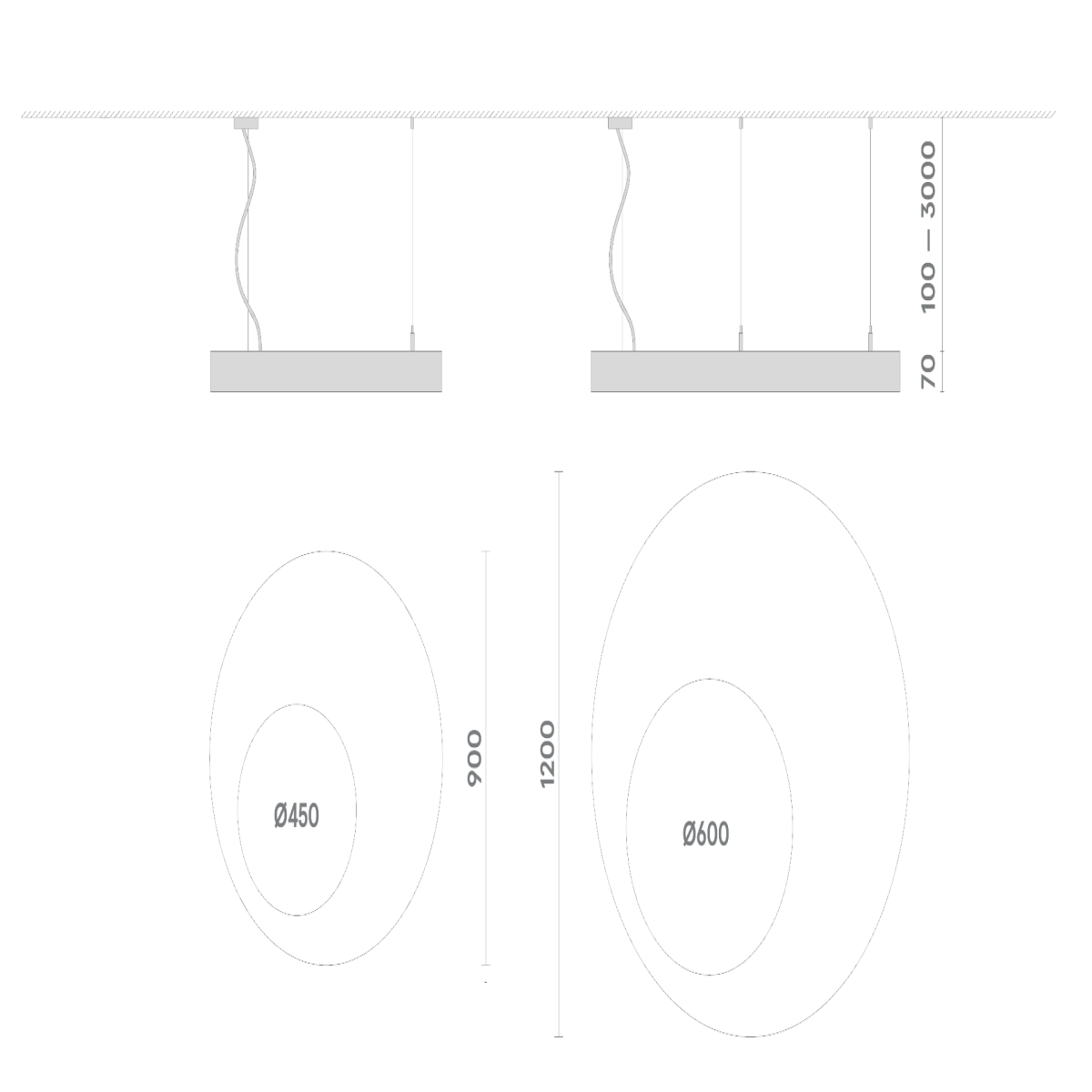 BUBBLE P 72W 3000K Ra90 T60 220V / Светильник LED, 900/450мм (подвес 3м) (БОСМА) БЕЛЫЙ |