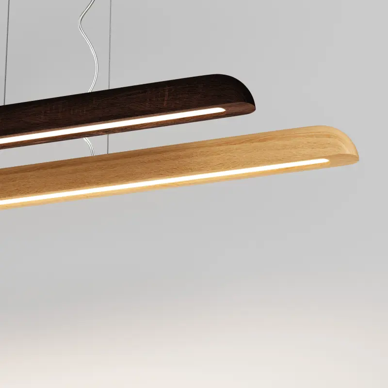 CARLO LIGHT 3 - подвесные светодиодные светильники, выполненные из массива бука, ясеня и дуба. Модели серии CARLO LIGHT производятся в трех размерах (1220/1510/1790 мм) и в трех цветовых решениях: натуральное светлое дерево / темное дерево / белое дерево. Драйвер размещен в деревяном драйвербоксе.
