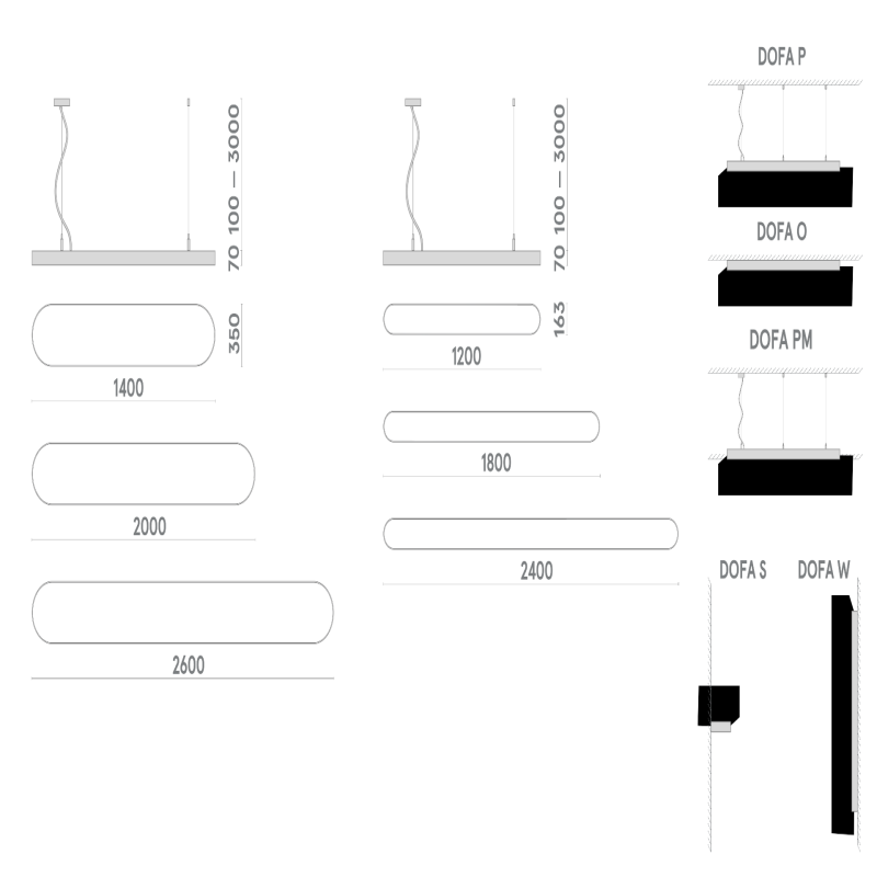 Серия светильников прямоугольной формы с закругленными углами DOFA с несколькими типами крепления: подвесные, накладные, встраиваемые. Два типоразмера обеспечивают широкий выбор моделей для помещений самых различных конфигураций с разной высотой потолка. Светильники могут использоваться как по отдельности, так и в композициях. Светильник разработан и производится в России.