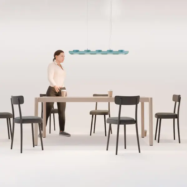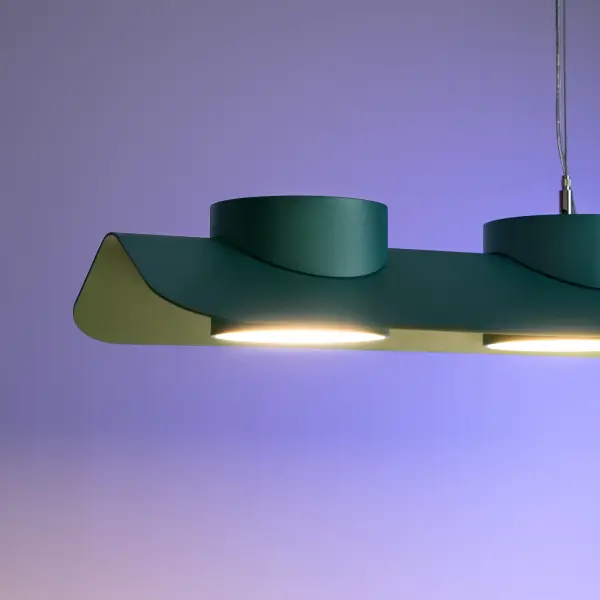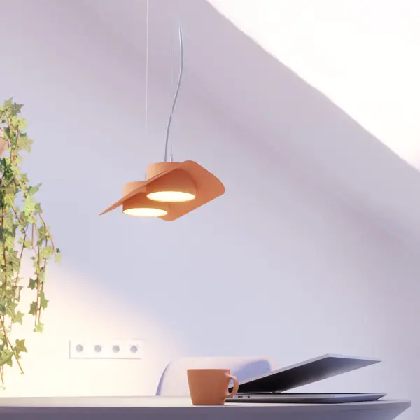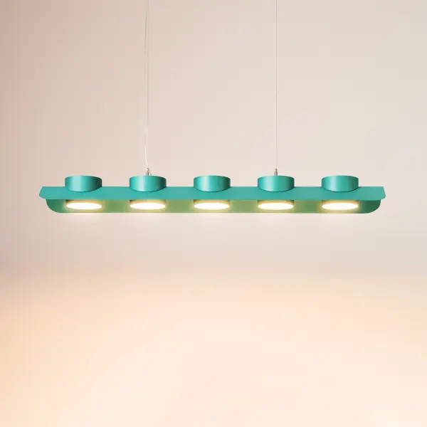 Система DOM состоит из нескольких прямых и угловых подвесных светильников. В каждом из них от 2 до 5 световых модулей, созданных на основе светильника MINI RINGO. Система DOM специально разработана для освещения рабочих мест, однако необычная форма сделала его привлекательным для кафе, ресторанов, общественных пространств.
