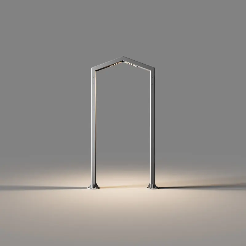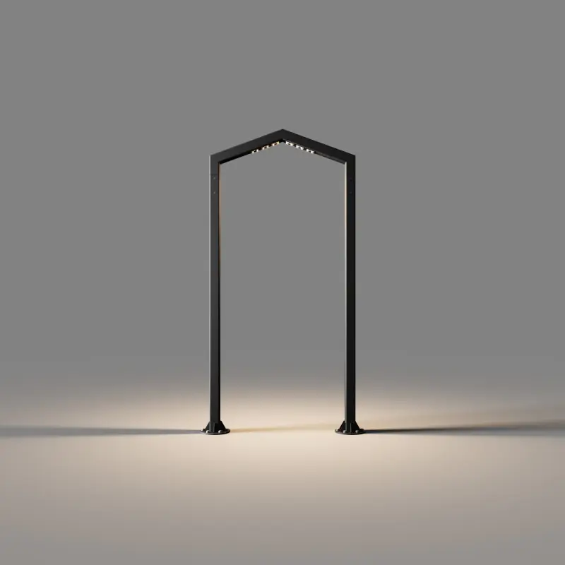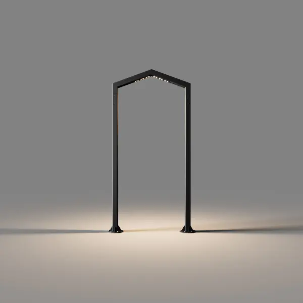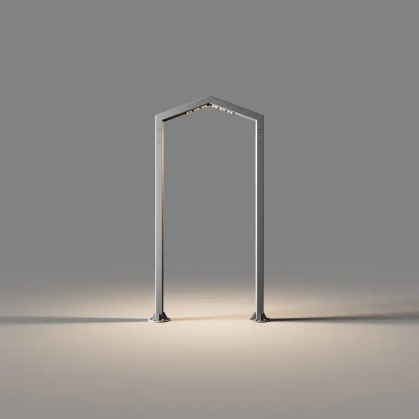 IMBA – цельная металлическая конструкция. Источники света расположены в верхней части светильника. Арка имеет треугольную форму.