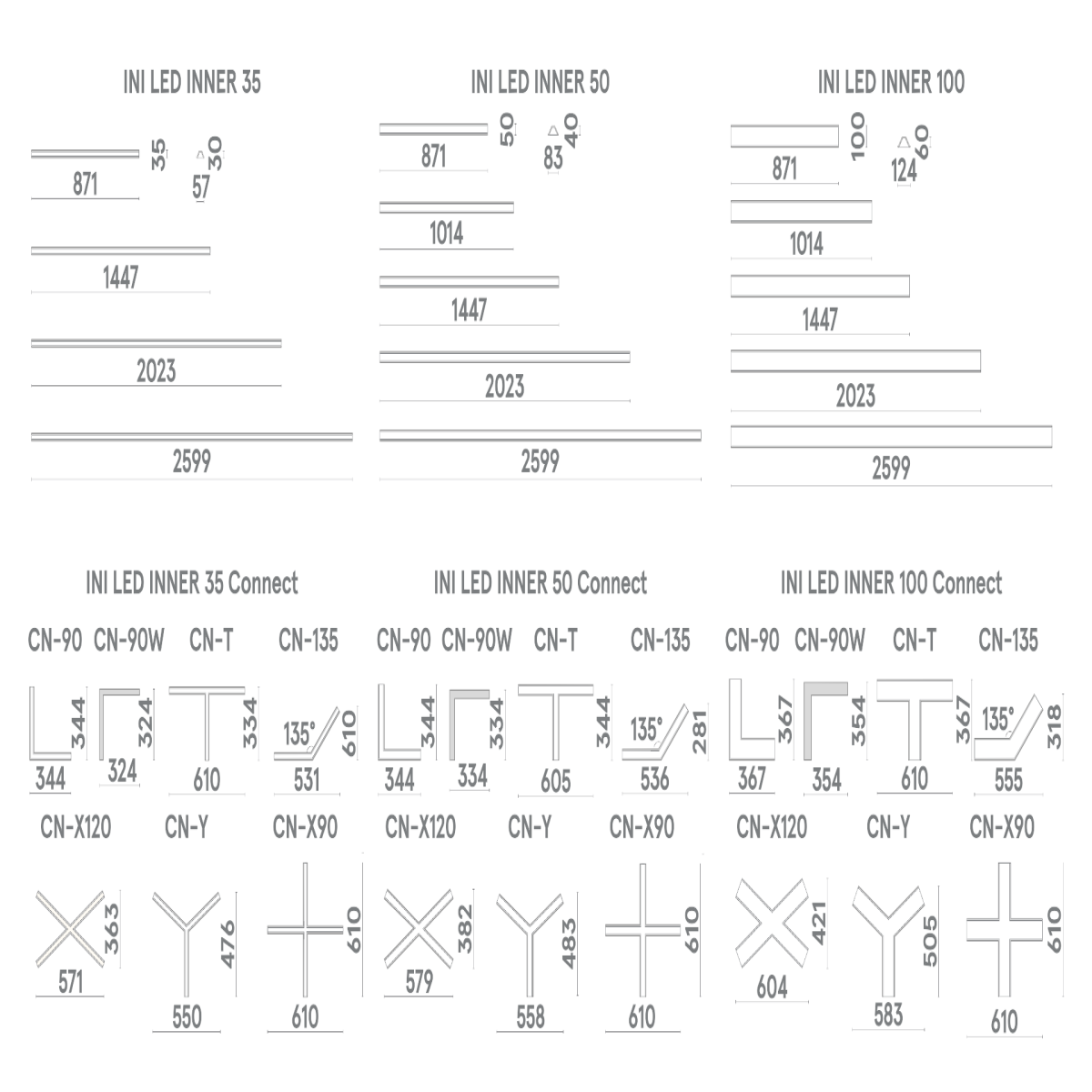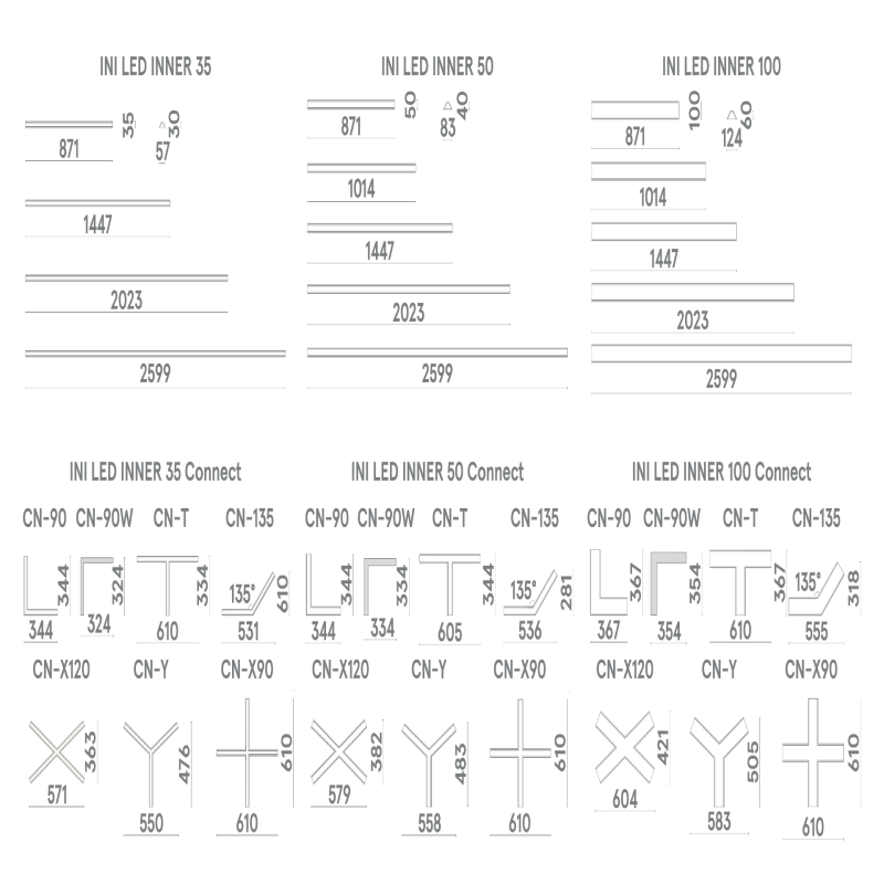 INI LED INNER — серия встраиваемых линейных светодиодных светильников для общего и декоративного интерьерного освещения помещений. Удобное крепление регулируется в соответствии с толщиной потолочных покрытий. Компактные размеры позволяют легко установить светильник даже в потолок с ограниченным запотолочным пространством.