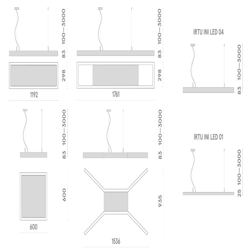 Корпус светильника выполнен из алюминия, окрашен порошковой краской. Драйвер (блок питания) интегрирован в корпус светильника у версии IRTU 04, у версии IRTU 01 драйвер (блок питания) находится на выносе. Матовый рассеиватель обеспечивает равномерную засветку и отсутствие пикселизации. В стандарте версия с диммированием по 1-10V, возможно диммирование по протоколу DALI.
