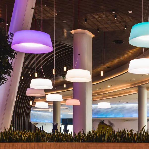 Серия больших светодиодных подвесных светильников в форме абажура KAPA (торговая марка - БОСМА (БОСМА™)) для функционального и декоративного освещения холлов и атриумов отелей, деловых, административных и торгово-развлекательных центров. Светильник имеет четыре модификации: функциональный белый свет, общее освещение + RGB, диммируемая и ЭКО-версия со сниженным световым потоком. Универсальная модель сочетает функциональный свет в центре «абажура» с RGB-светодинамикой корпуса, что позволяет создавать уникальную световую атмосферу. Высокая светопропускающая способность корпуса-рассеивателя