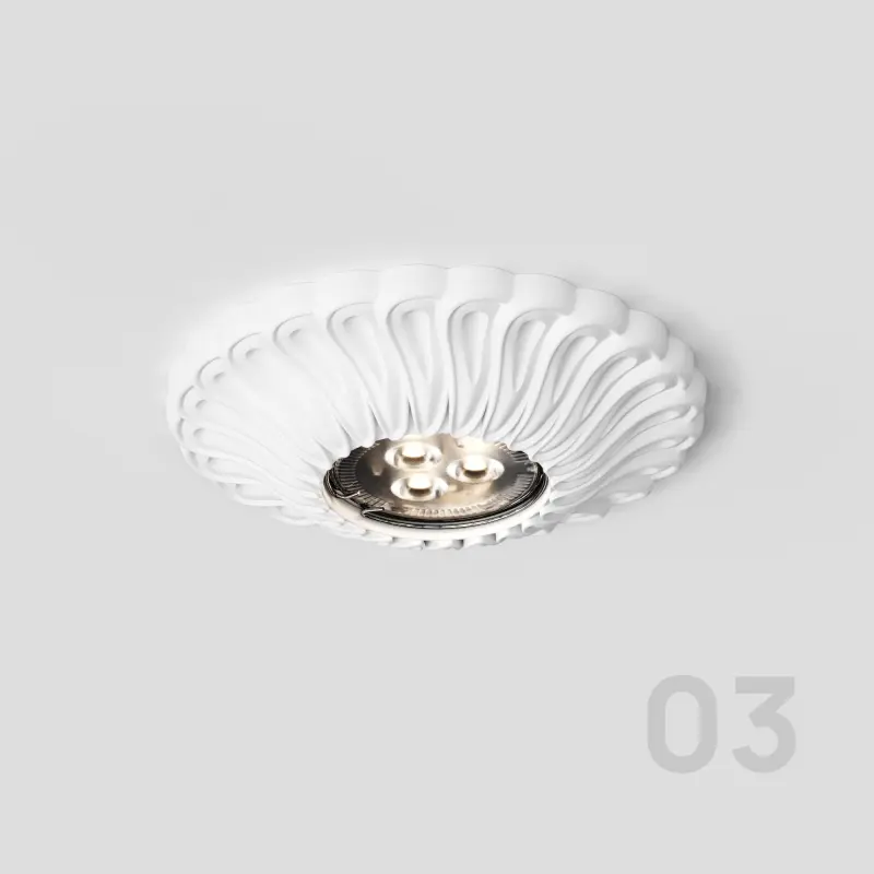 Гипсовые светильники серии LUMA встраиваются в поверхность потолка. Простая и удобная установка не требует специальной квалификации монтажников, что позволяет создать необычный дизайн в короткие сроки и при минимальных затратах.