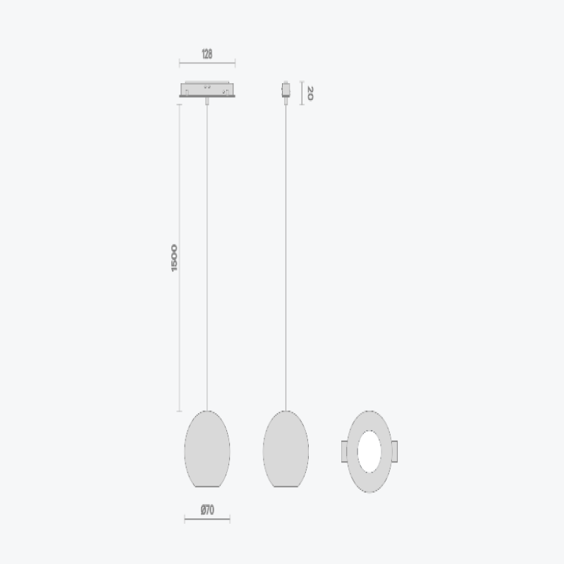 - D 70мм. Длина подвеса 1,5м – не включает в себя длину светильника.