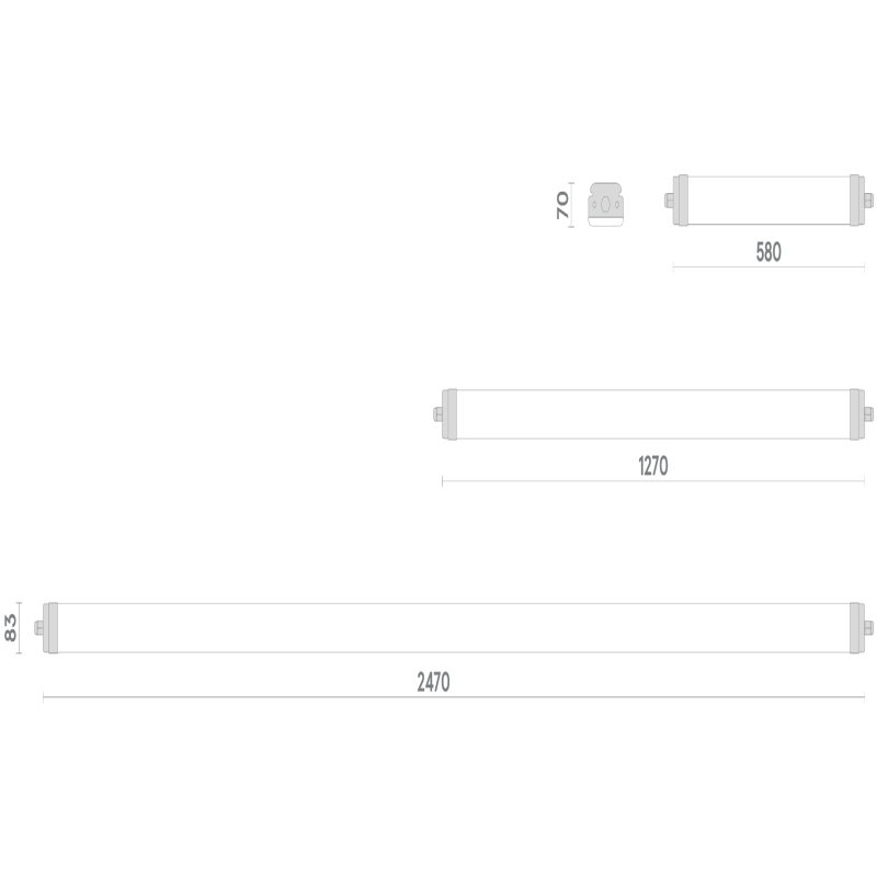 Серия включает три типоразмера светильников, каждый из которых может исполняться в четырех модификациях с разной цветовой температурой света: 3000/4000/5000/6500К.