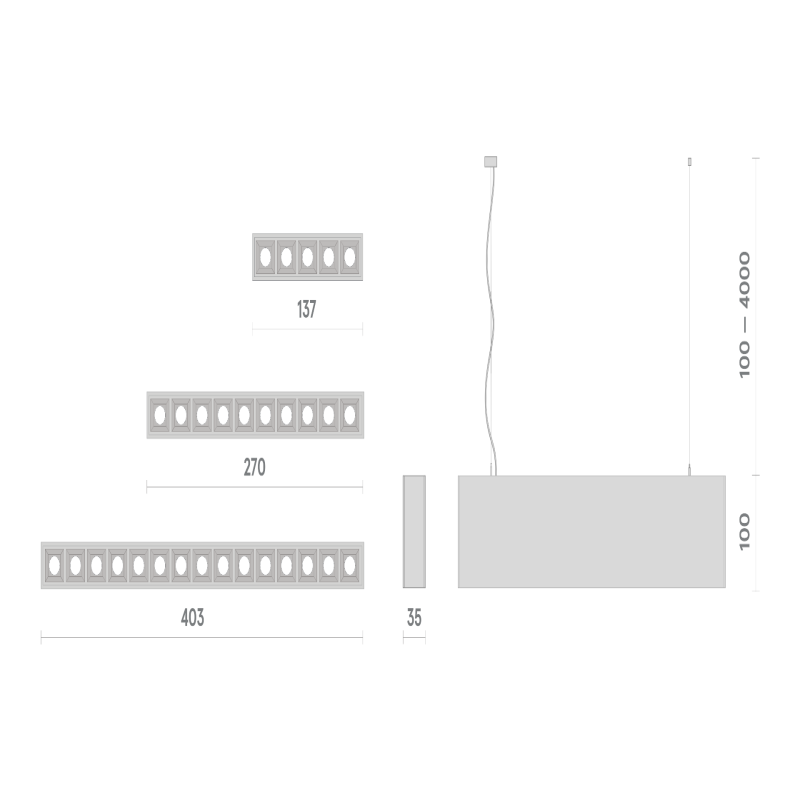 - Увеличение длины подвеса и кабеля подключения (2000, 3000, 4000 мм)