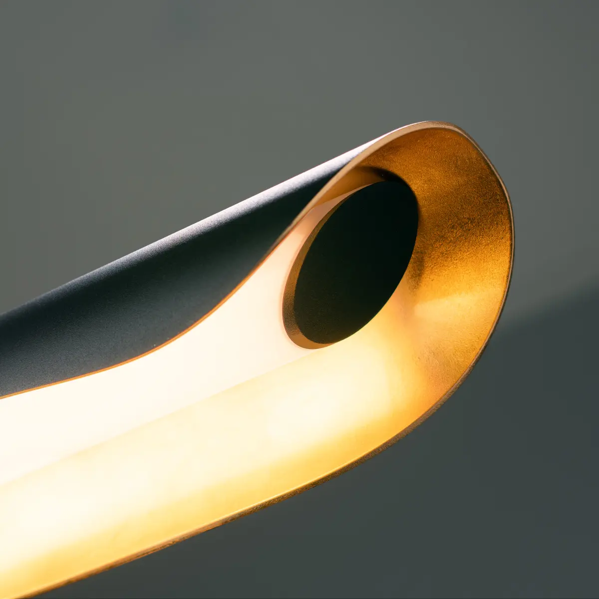 • Декоративный корпус-отражатель. Уникальный корпус из трубы с волнообразным асимметричным вырезом создает захватывающий эффект игры форм, которые меняются в зависимости от угла обзора.
