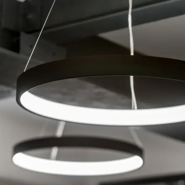 Серия подвесных светодиодных светильников кольцеобразной формы ORIO (торговая марка БОСМА). Светильник представляет собой плоское кольцо толщиной 14 мм и высотой 52 мм. Источник света может быть расположен на внутренней или на внешней поверхности кольца. Драйвер расположен в декоративном драйвер боксе, с помощью которого осуществляется крепление к плоскости потолка. Светильник поставляется с комплектом регулируемых подвесов.