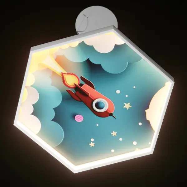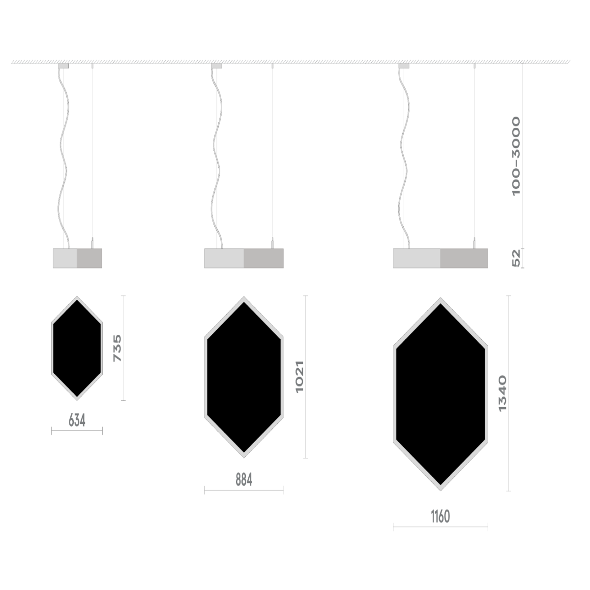 Серия подвесных светодиодных светильников ORIO NELLA (торговая марка БОСМА). Светильник представляет собой шестиугольник толщиной 14 мм и высотой 52 мм. Источник света расположен на внутренней поверхности светильника. Драйвер расположен в декоративном драйвер боксе, с помощью которого осуществляется крепление к плоскости потолка. Светильник поставляется с комплектом регулируемых подвесов.