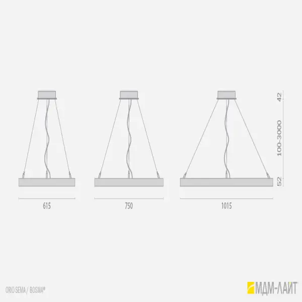 В размерном ряду представлено три диаметра светильника (d 615/750/1015 мм), что позволит вам найти решение для освещения помещений любых габаритов и с любой высотой потолка.