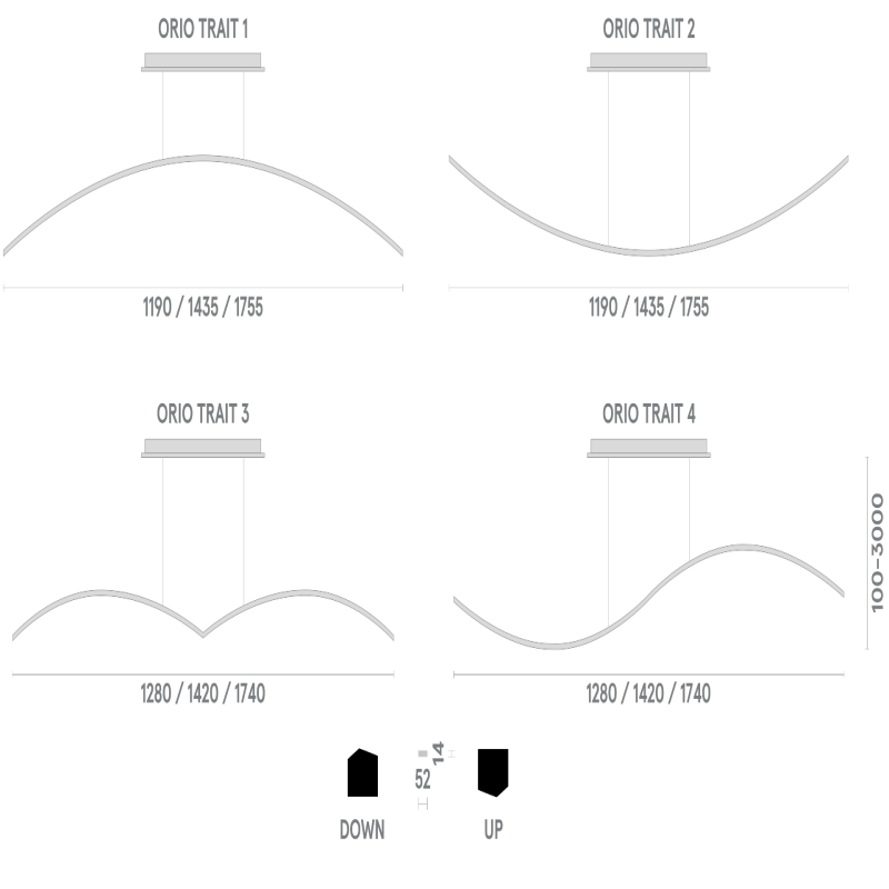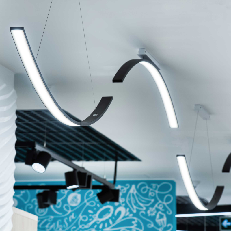 Серия подвесных светодиодных светильников ORIO TRAIT (торговая марка БОСМА). Серия представлена четырьмя изогнутыми формами светильников: