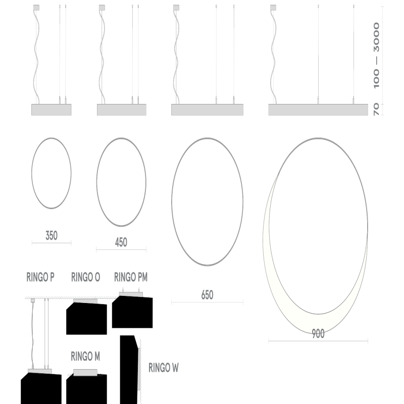- RINGO P – подвесной, монтаж с помощью цанговых подвесов;