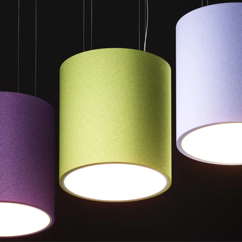 Светильник RINGO HIGH ACOUSTIC цилиндрической формы создан на базе светильника RINGO. Его отличительной особенностью является наличие акустической панели, декорированный фетром и закрепленный на раме светильника. RINGO HIGH ACOUSTIC позволяет снизить уровень шума в помещении и благодаря этому успешно применяется в офисных помещениях. Свет, создаваемый светильником, мягкий и равномерный, подходит как для рабочих пространств, так и для зон отдыха. RINGO HIGH ACOUSTIC обладает современным и лаконичным стилем, что делает его удачным выбором и в качестве декоративного элемента.