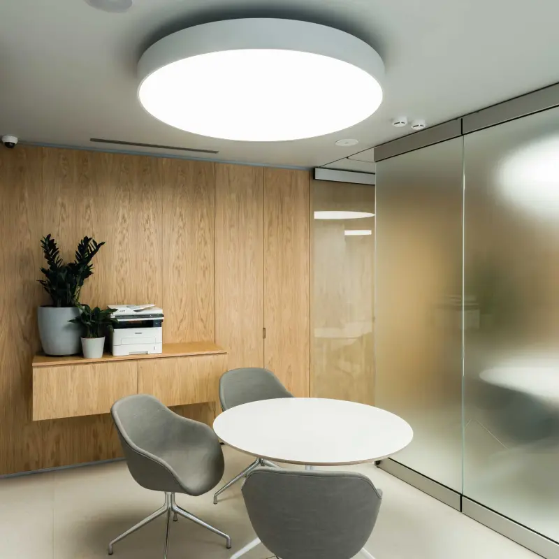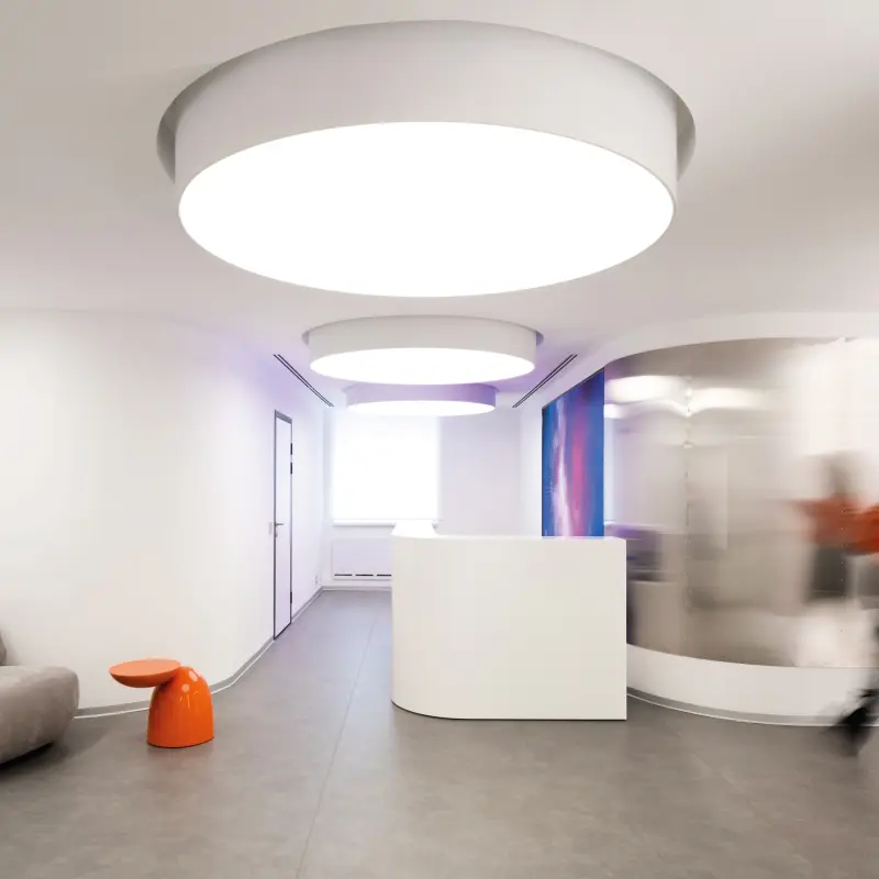 Серия светодиодных светильников больших размеров RINGO MAX круглой, дискообразной формы с равномерно светящейся поверхностью.