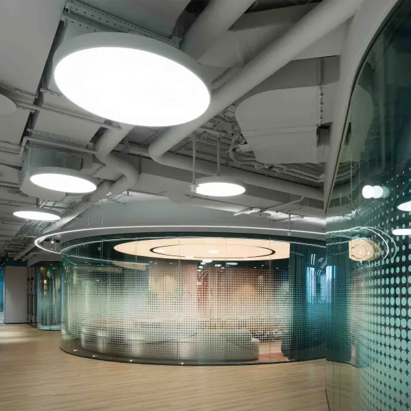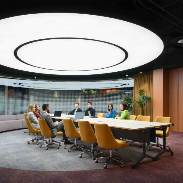 Корпус светильника выполнен из алюминия, окрашен порошковой краской. Натяжная светорассеивающая мембрана обеспечивает равномерную засветку и отсутствие пикселизации. Мягкий рассеянный свет помогает создавать комфортную световую среду.