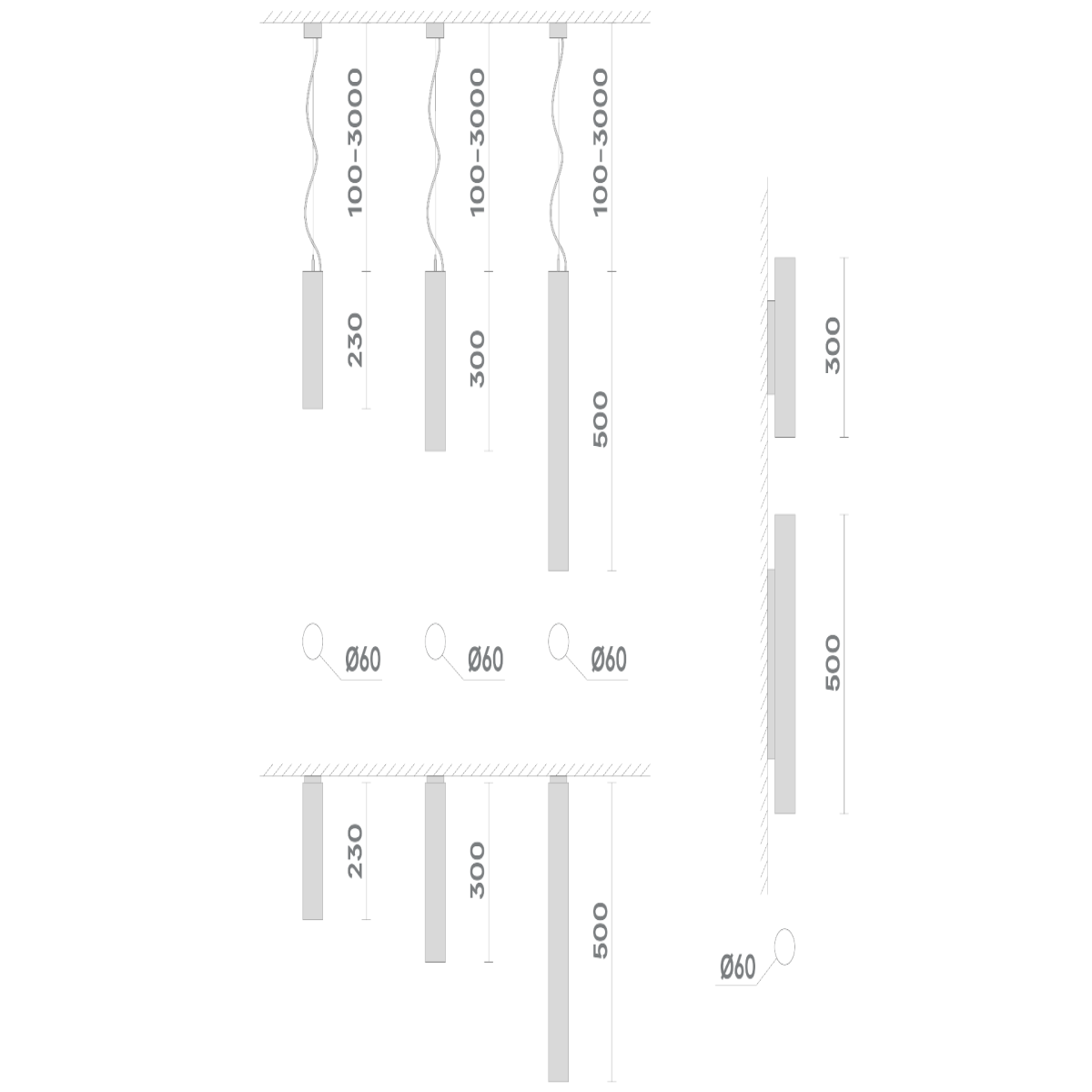 - Увеличение длины подвеса и кабеля подключения