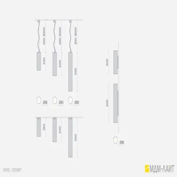RUNIC – светильник в форме трубы, диаметром 110мм, 90мм, 60мм и 35мм , окрашенной в два стандартных цвета на выбор: белый и черный. Серия двенадцать типоразмеров с тремя разными длинами и четырьмя диаметрами светильника. Каждый светильник укомплектован светодиодным источником света (LED).