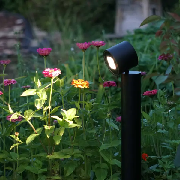 Светильник RUON LAND от ТМ БОСМА предназначен для акцентирования внимания на определенных элементах ландшафта или архитектуры, таких как деревья, кустарники, фасады зданий или декоративные элементы. Благодаря своей форме и поворотной световой части, светильник позволяет легко регулировать направление света и создавать разнообразные световые эффекты.