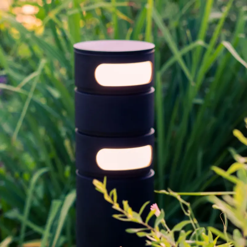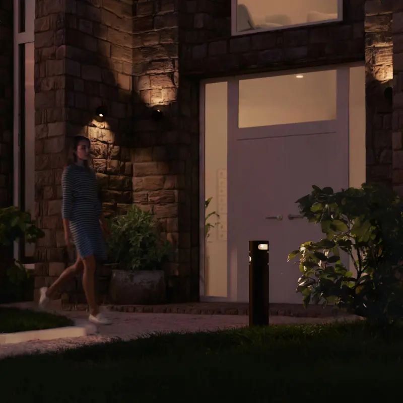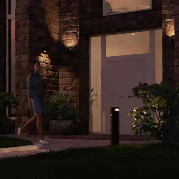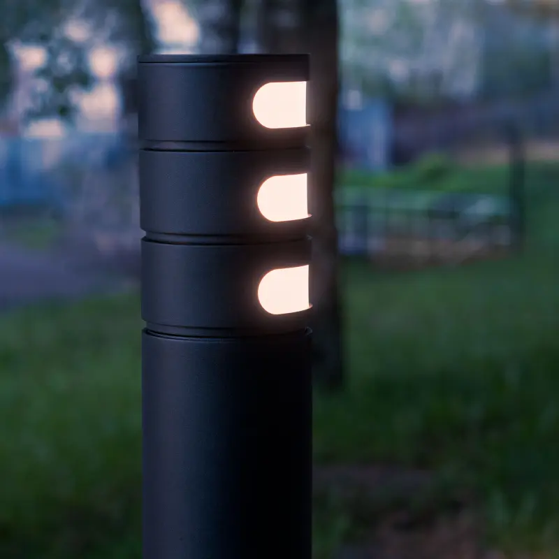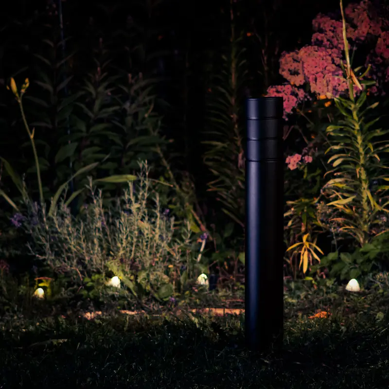 Таким образом, светильник SKILT может устанавливаться, например, на перекрёстке парковых дорожек, и освещать – одну дорожку первым световым элементом, и другую – вторым. Также светильник хорошо подходит для комбинации освещения дорожки и растительности или элементов архитектуры – всё с помощью одного небольшого светильника-болларда.