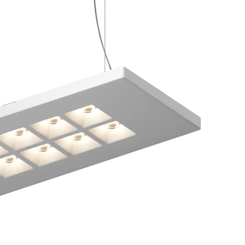 SLOTER (UP-DOWN) – подвесной прямоугольный светильник с линзованными светодиодными модулями, расположеными в углублениях корпуса светильника.