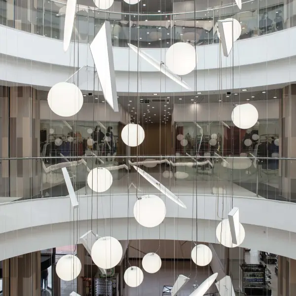 Серия светодиодных дизайнерских светильников изящной веретенообразной формы больших размеров для декоративного и функционального освещения STRELA (торговая марка - БОСМА). Разнообразие моделей и типов монтажа (подвесной, накладной) с возможностью крепления на потолок и стену позволяет комбинировать светильники и составлять световые композиции, сохраняя единство стиля. Эти большие светильники прекрасно смотрятся в любом интерьере. Высокая светопропускающая способность корпуса
