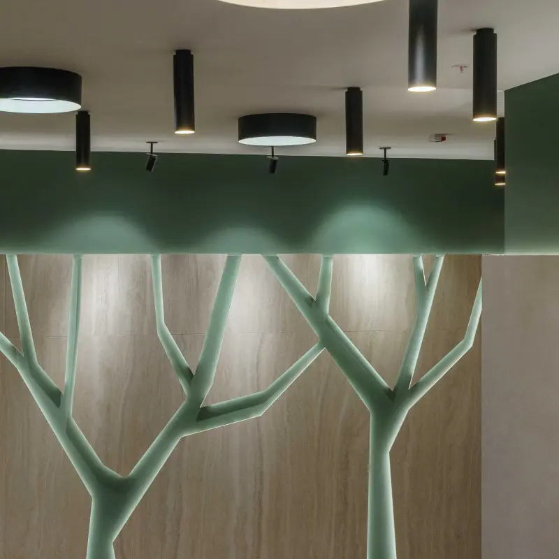 Акцентное освещение общественных пространств: точечное использование для подсветки деталей интерьера или групповое, для создания композиционного элемента.