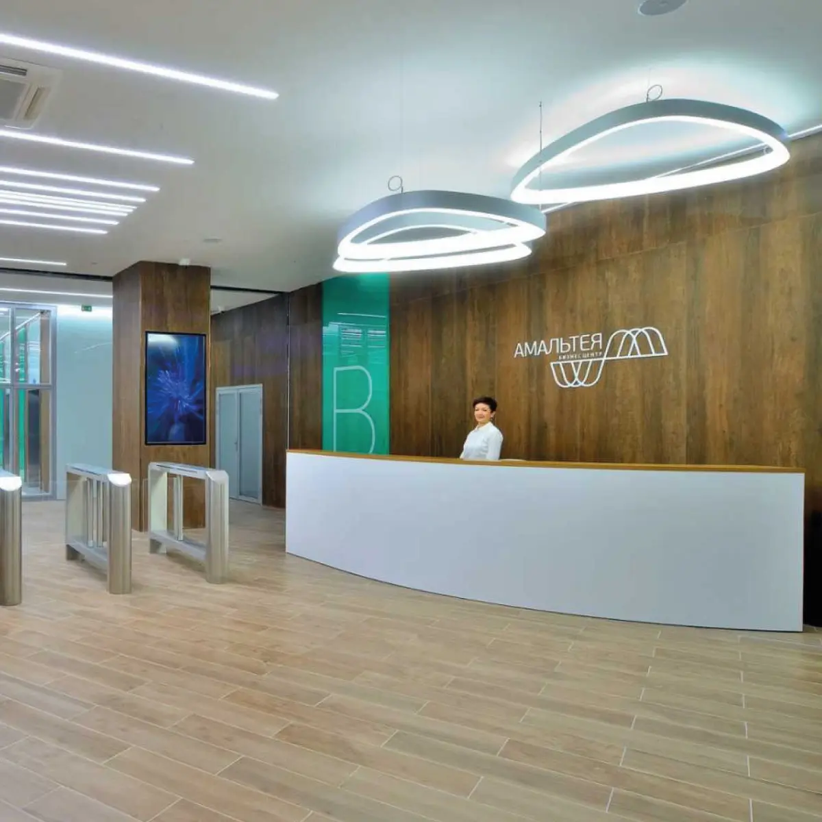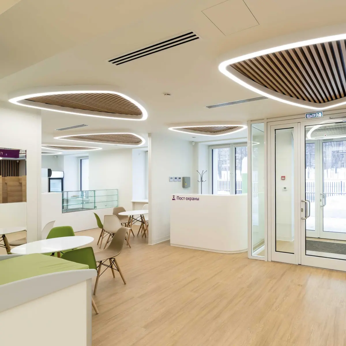 Установка осуществляется с помощью регулируемых подвесов, высота регулируется на самом светильнике, а не в месте крепления на потолке.
