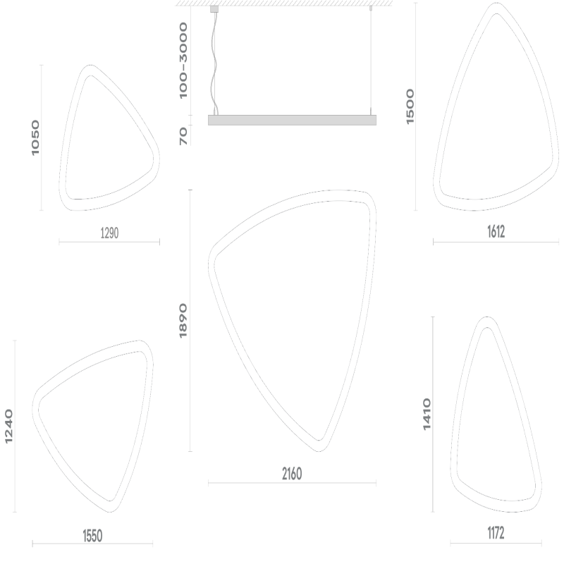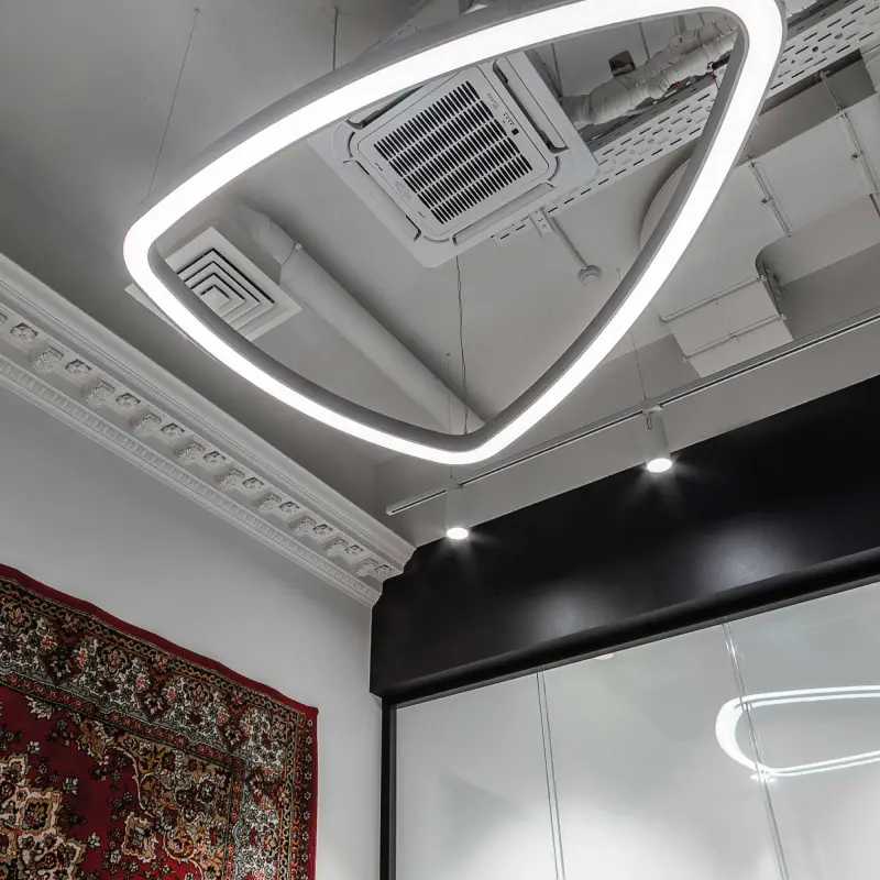 Серия светодиодных светильников TERADA в форме равносторонних треугольников со скругленными углами.