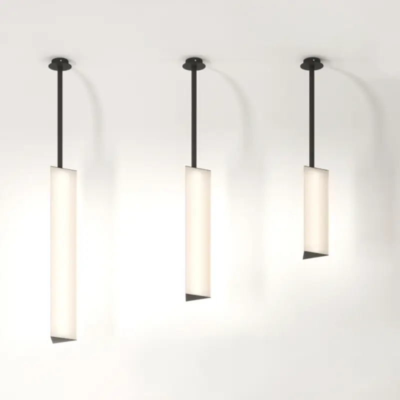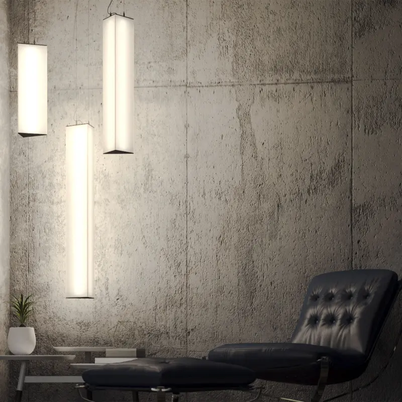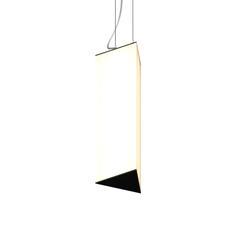 Подвесной светодиодный светильник TREU VERTICAL выполнен в виде продолговатой призмы на подвесе. Рассеивание света реализуется благодаря белому матовому поликарбонату, создающему мягкую и комфортную световую среду.