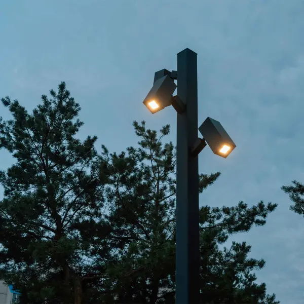 Поворотный механизм и несколько световых элементов позволяют решать задачу разнопланового освещения одним светильником. Например, подсветить одновременно дорожку и деревья, расположенные на удалении.