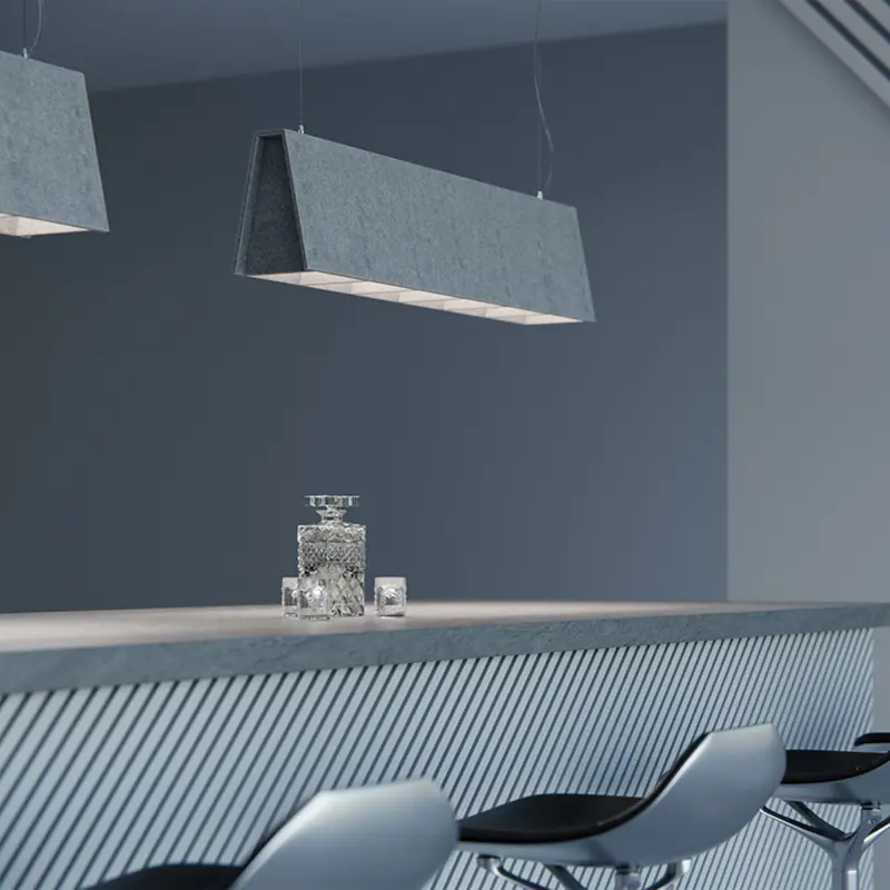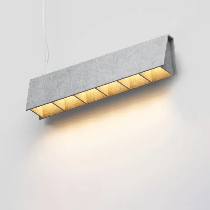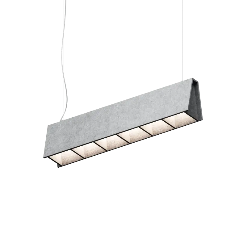 Модель отличается высокими светотехническими параметрами – в особенности, низким показателем светового дискомфорта (UGR < 16). За счет этого VERNA II ACOUSTIC обеспечивает равномерное освещение без эффекта ослепления. Звукопоглощающий материал светильника позволяет создать комфортную атмосферу как для работы, так и для отдыха.