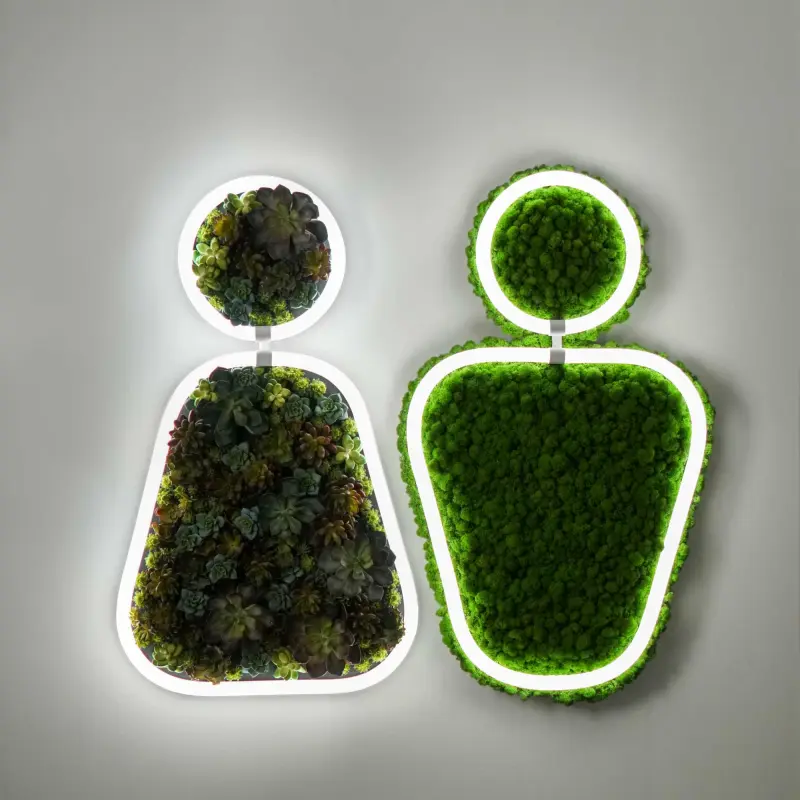 WC GREENING – серия навигационных декоративных светильников торговой марки BOSMA. Созданные для общественных и коммерческих пространств светильники серии WC GREENING решают две задачи – украшение интерьера и помощь в пространственной ориентации.
