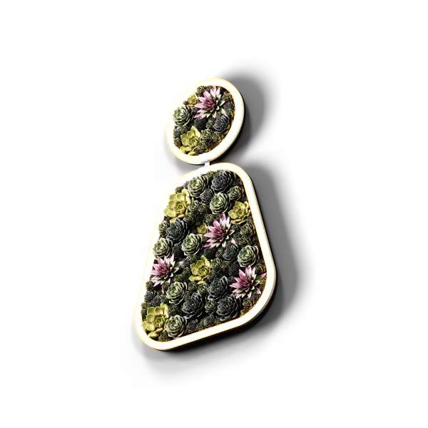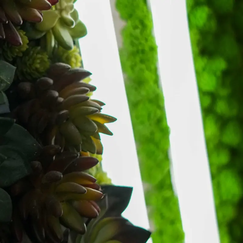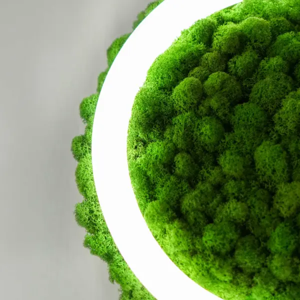 Световая часть светильника – гибкий элемент TRU-BA 360, обрамляющий панель, покрытый материалом на выбор: стабилизированным натуральным мхом или искусственными суккулентами.