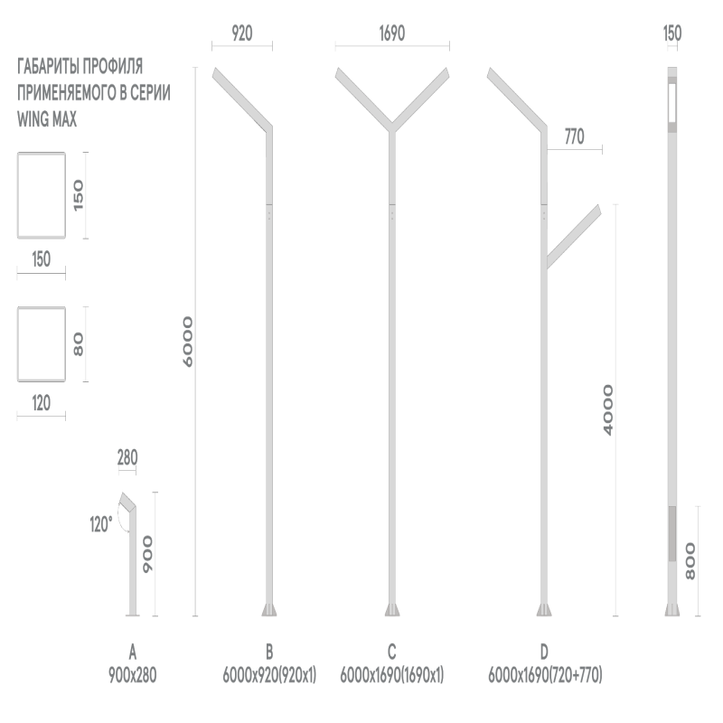 Светильники WING MAX имеют простую геометрическую форму: Г-образную, Т-образную и Z-образную. Головы расположены под углом к основанию.