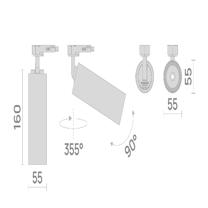 Серия WIZZY LED spot предлагает гибкость в настройке освещения: доступны четыре варианта угла рассеивания (15°, 23°, 45°, 60°) благодаря сменным отражателям. Прочный корпус из литого алюминия гарантирует долговечность, а компактные размеры (D55×L160 мм, вес 400 г) делают монтаж удобным.
